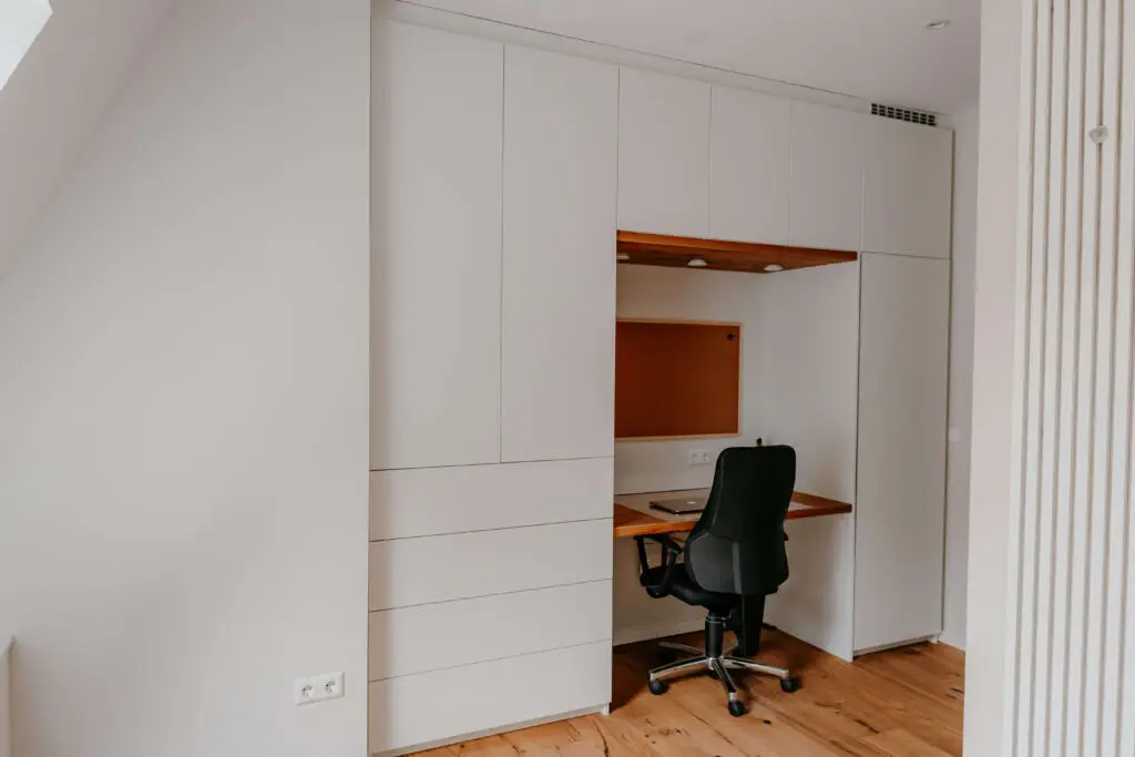 Als spezialisierte Tischlerei für Innenausbau, Möbelbau und Objekteinrichtungen gestalten wir maßgefertigte Raumlösungen, die Funktion, Design und Nachhaltigkeit vereinen. Mit einem erfahrenen Team, modernster Technik und einem feinen Gespür für Details schaffen wir Werte, die Bestand haben.