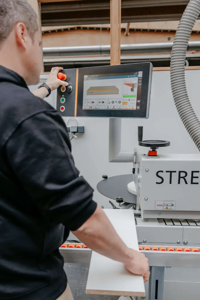 Dank modernster CAD- und CAM-Technik fertigen wir präzise und effizient. CNC-gesteuerte Anlagen garantieren Ergebnisse auf den Zehntelmillimeter genau und konstant hohe Qualität – vom Entwurf bis zum fertigen Werkstück. CNC-Kantenautomaten sorgen dabei für perfekte Nullfugen und makellose Oberflächen.